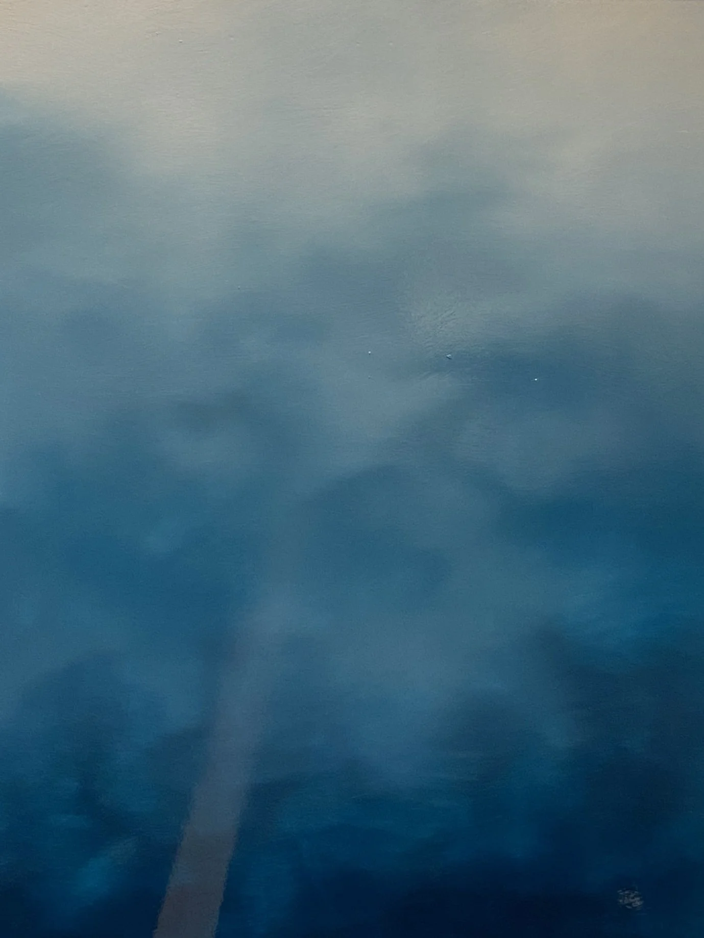 Cette œuvre sublime ce meuble en une pièce unique, intégrant des nuances subtiles et lumineuses inspirées du ciel.