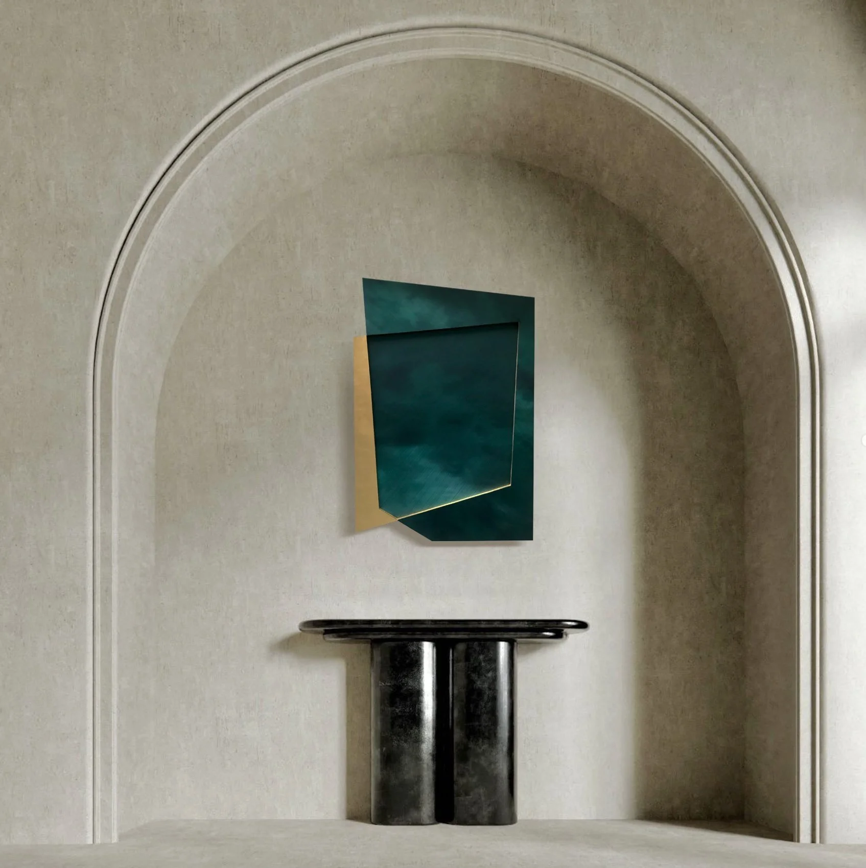Peinture acrylique sur bois. Dorure à la feuille d’or (Or platine 23,75 carats).
