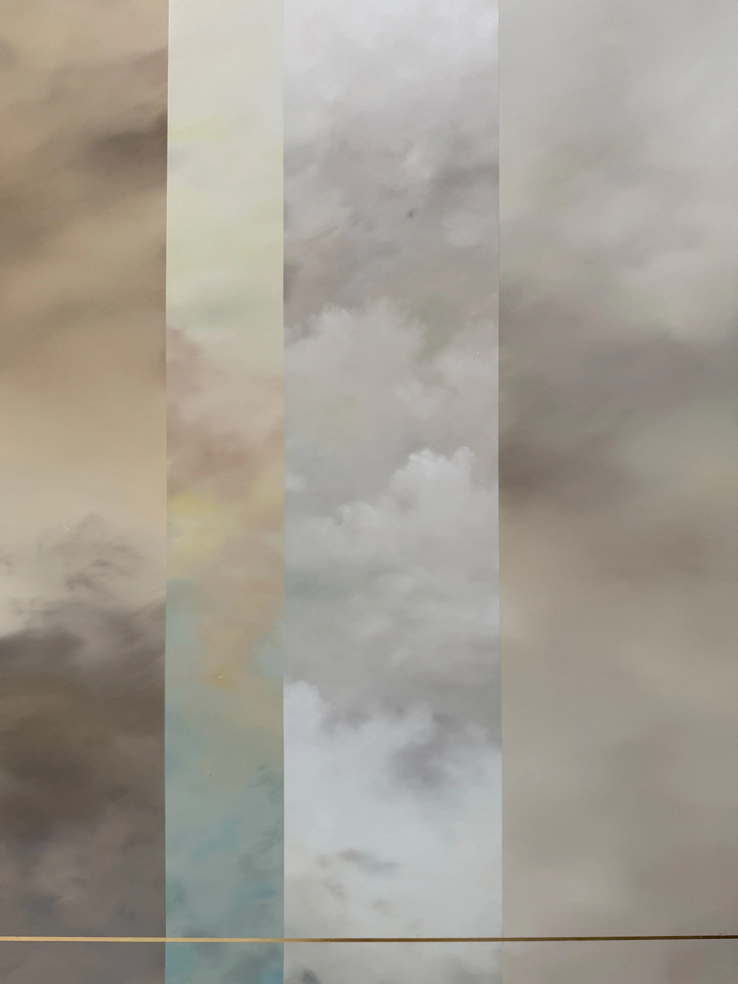 Cette œuvre est s’inspire des lignes architecturales de Dubaï, floutées par la chaleur. Les reflets dorés et les teintes sable traduisent cette sensation de lumière vibrante et d’air chaud.
